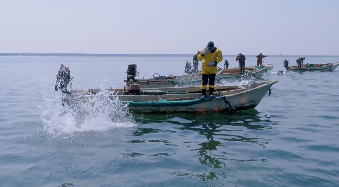 儀式過后,海猛子們登上漁船,開足馬力,一起向蔚藍的大海前進,開啟海參滿倉的2021春季刺參采捕之旅。